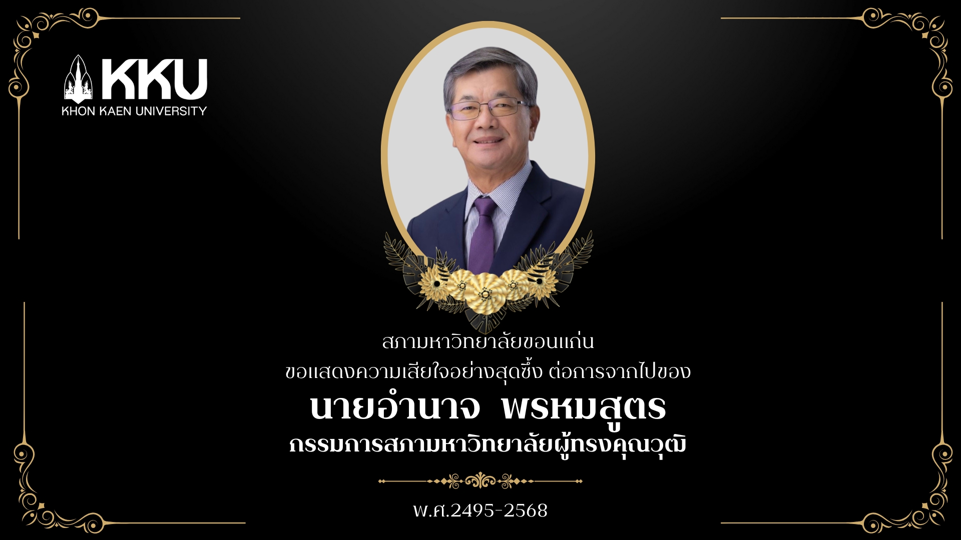 สภามหาวิทยาลัยขอนแก่นขอแสดงความเสียใจอย่างสุดซึ้ง ต่อการจากไปของ นายอำนาจ พรหมสูตร กรรมการสภามหาวิทยาลัยผู้ทรงคุณวุฒิ 18 September 202518 September 2025 kku ข่าวประชาสัมพันธ์ สภามหาวิทยาลัยขอนแก่นขอแสดงความเสียใจอย่างสุดซึ้ง ต่อการจากไปของ นายอำนาจ พรหมสูตร กรรมการสภามหาวิทยาลัยผู้ทรงคุณวุฒิ เมื่อวันที่ 17 กันยายน 2568 เวลา 23.21 น. สิริอายุ 73 ปี