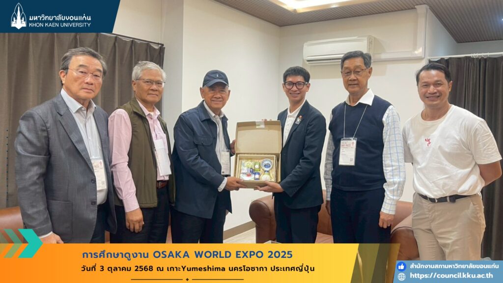 และในวันที่ 3 ตุลาคม 2568 ดร.ณรงค์ชัย อัครเศรณี นายกสภามหาวิทยาลัย รศ.นพ.ชาญชัย พานทองวิริยะกุล อธิการบดีมหาวิทยาลัยขอนแก่น กรรมการสภามหาวิทยาลัยผู้ทรงคุณวุฒิ ได้การศึกษาดูงาน Osaka World Expo 2025 ณ เกาะ Yumeshima นครโอซากา ประเทศญี่ปุ่น โดยได้เยี่ยมชมทั้งหมด 3 Pavilion คือ Pavilion ประเทศไทย Pavilion สหรัฐอเมริกา และPavilion สาธารณรัฐประชาชนจีน