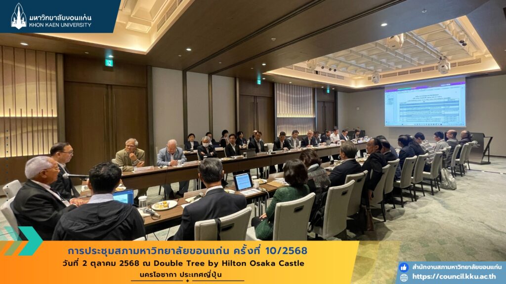 เมื่อวันที่ 1-4 ตุลาคม 2568 ณ นครโอซากา ประเทศญี่ปุ่น สภามหาวิทยาลัยขอนแก่น จัดการประชุมสภามหาวิทยาลัย (สัญจร) ครั้งที่ 10/2568 ในวันที่ 2 ตุลาคม 2568 ณ Double Tree by Hilton Osaka Castle นครโอซากา ประเทศญี่ปุ่น