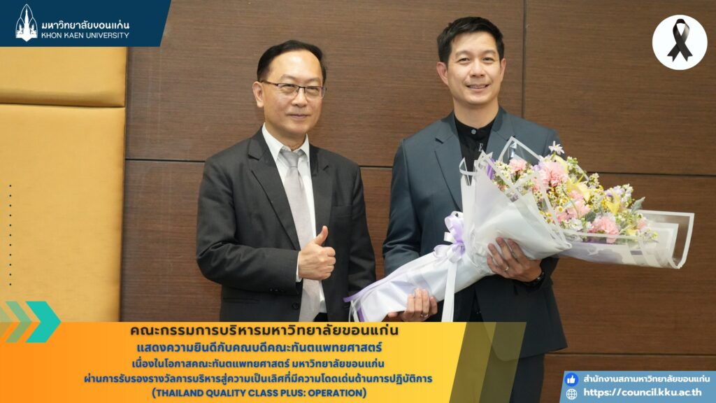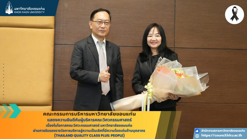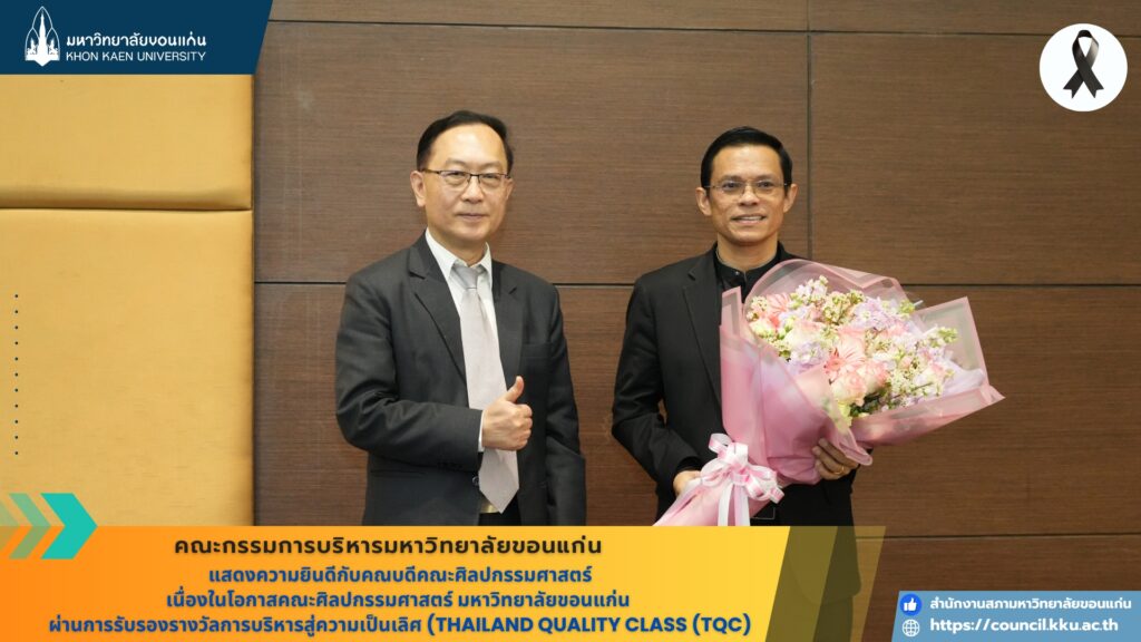 คณะกรรมการบริหารมหาวิทยาลัยขอนแก่น แสดงความยินดีกับคณะวิศวกรรมศาสตร์ คณะศิลปกรรมศาสตร์ และคณะทันตแพทยศาสตร์ ในโอกาสได้ผ่านการรับรองรางวัลการบริหารสู่ความเป็นเลิศ (Thailand Quality Class (TQC)