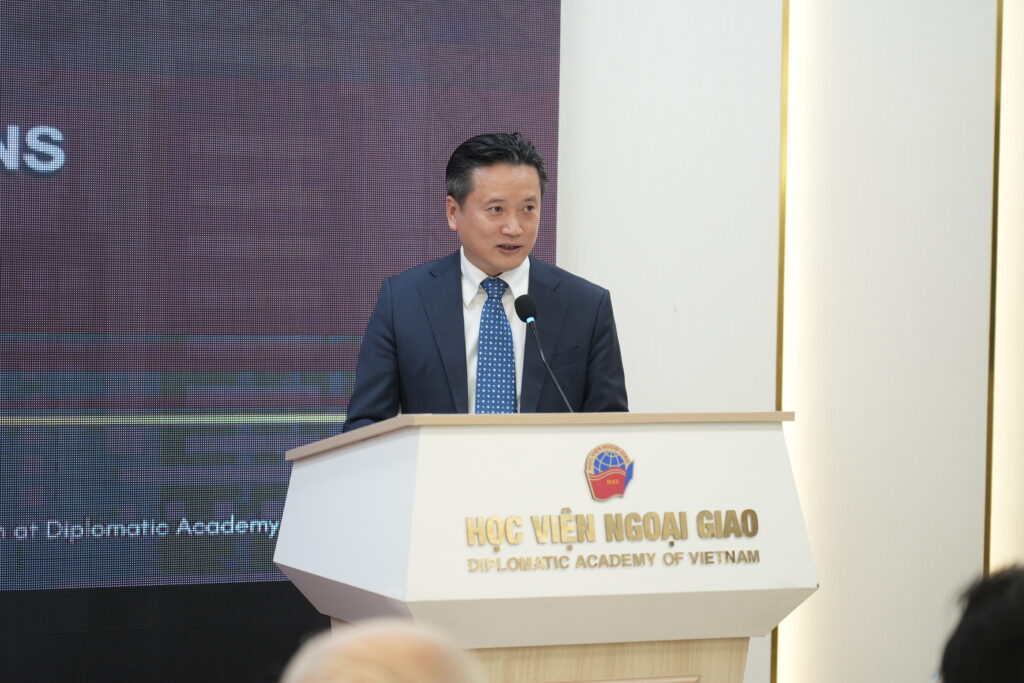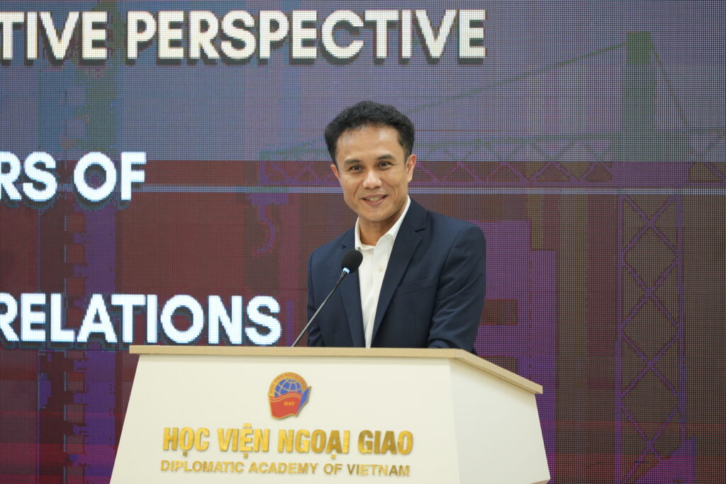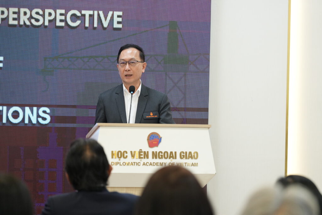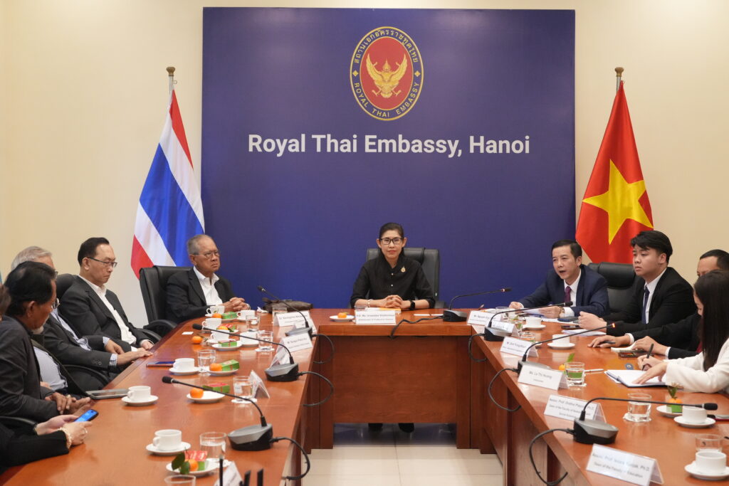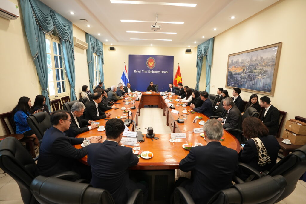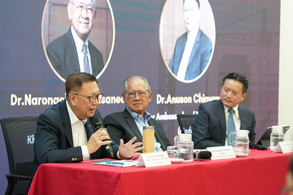 ช่วงบ่ายคณะกรรมการสภามหาวิทยาลัยและคณะผู้บริหารมหาวิทยาลัยขอนแก่น ได้เข้าร่วมกิจกรรมเสวนาทางวิชาการในหัวข้อ “An Economic Tale of Two Countries, Thailand and Vietnam: Compare/Contrast” เพื่อแลกเปลี่ยนมุมมองด้านเศรษฐกิจและการพัฒนาประเทศ โดยได้รับเกียรติจากวิทยากรผู้ทรงคุณวุฒิระดับสูง ได้แก่ Dr. Nguyen Hung Son อธิการบดีสถาบันการทูตเวียดนาม (Diplomatic Academy of Vietnam), ดร.ณรงค์ชัย อัครเศรณี นายกสภามหาวิทยาลัยขอนแก่น และ ดร.อนุสนธิ์ ชินวรรโณ อดีตเอกอัครราชทูตไทยประจำเวียดนาม ร่วมเป็นวิทยากรและผู้ดำเนินรายการ การบรรยายนี้สะท้อนบทบาทของมหาวิทยาลัยในการเป็น “ปัญญาของสังคม” ที่เชื่อมโยงความรู้ระดับสากลสู่การพัฒนาท้องถิ่นและระดับชาติ