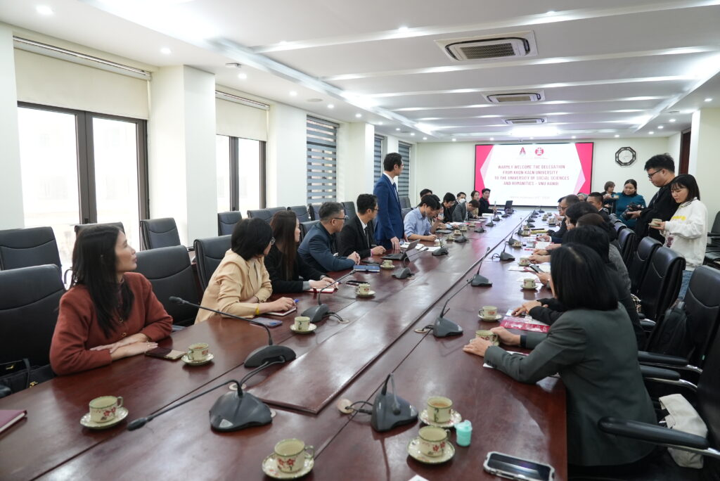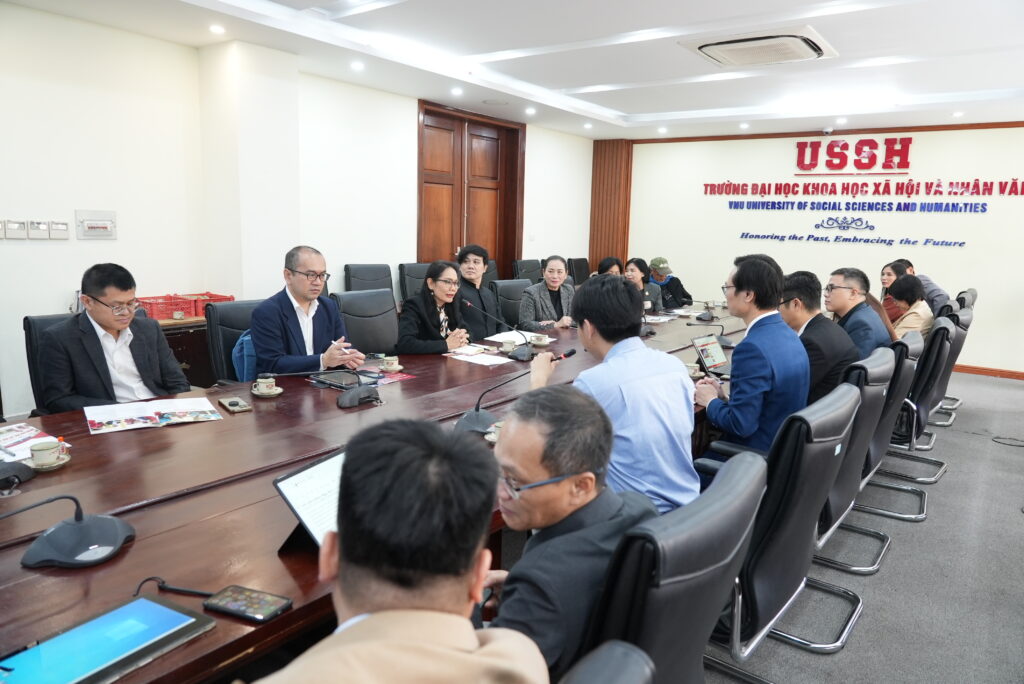 และในช่วงบ่ายวันเดียวกันคณะผู้บริหารมหาวิทยาลัยขอนแก่น ปรึกษาหารือร่วมกับ VNU University of Social Sciences and Humanities (VNU-USSH) โดยได้รับเกียรติจาก Prof. Dr. Hoang Anh Tuan อธิการบดี VNU-USSH ให้การต้อนรับ ฝ่าย มหาวิทยาลัยขอนแก่น นำโดย รองศาสตราจารย์ ดร.เพ็ญศรี เจริญวานิช รองอธิการบดีฝ่ายกิจการนักศึกษาและนวัตวณิชย์ และคณะผู้บริหารจากสาขาสังคมศาสตร์ และมนุษยศาสตร์ เข้าร่วมประชุมด้วย