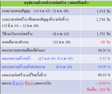 พร้อมทั้ง มอบหมายให้มหาวิทยาลัยเร่งรัดและติดตามการดำเนินงานอย่างใกล้ชิด เพื่อลดผลกระทบจากความล่าช้าและจัดทำแผนชดเชยเวลาที่ล่าช้าด้วย